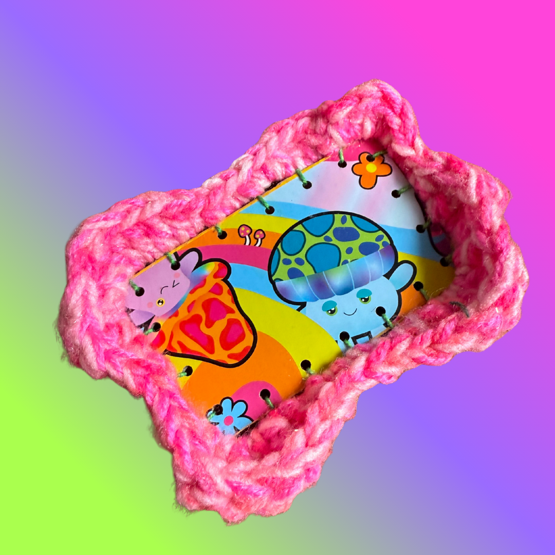 Edition #2 the Magic Mushroom wall hangings came from a line of mushroom plush dolls ColourPuff Girl collected in 2024 called “Living On the Verge”. These mushrooms are so magical and whimsical and ColourPuff Girl had so much fun making the frames match the personality of the mushroom!