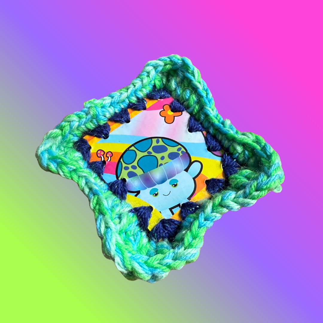 Edition #6 the Magic Mushroom wall hangings came from a line of mushroom plush dolls ColourPuff Girl collected in 2024 called “Living On the Verge”. These mushrooms are so magical and whimsical and ColourPuff Girl had so much fun making the frames match the personality of the mushroom!
