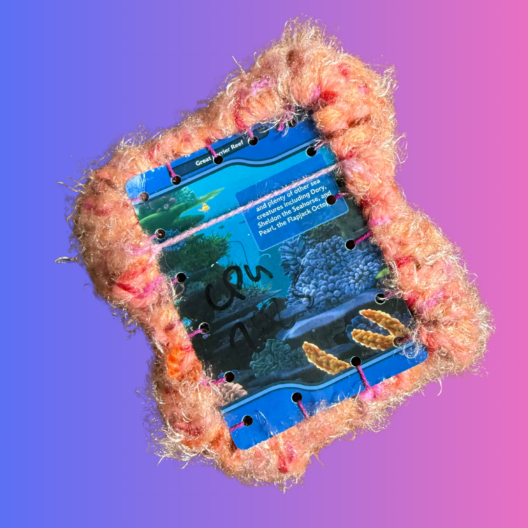 These pop culture wall hangings were made from recycled collectible cards that you could find at Australian Grocery stores in 2025. This kind of collectible is so often thrown out and discarded once the hype goes away and the next collection comes out. ColourPuff Girl wanted to make sure they weren’t wasted and celebrated instead! These wall pieces feature some of ColourPuff Girls favourite characters in movies and it was so fun to create custom frames for the cards. The Whacky Post modern style of frame adds to the whimsy and celebrates each character.