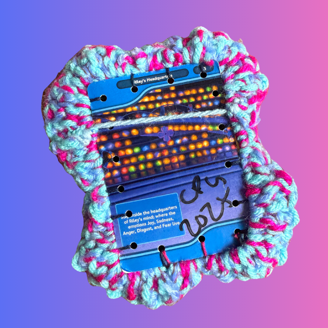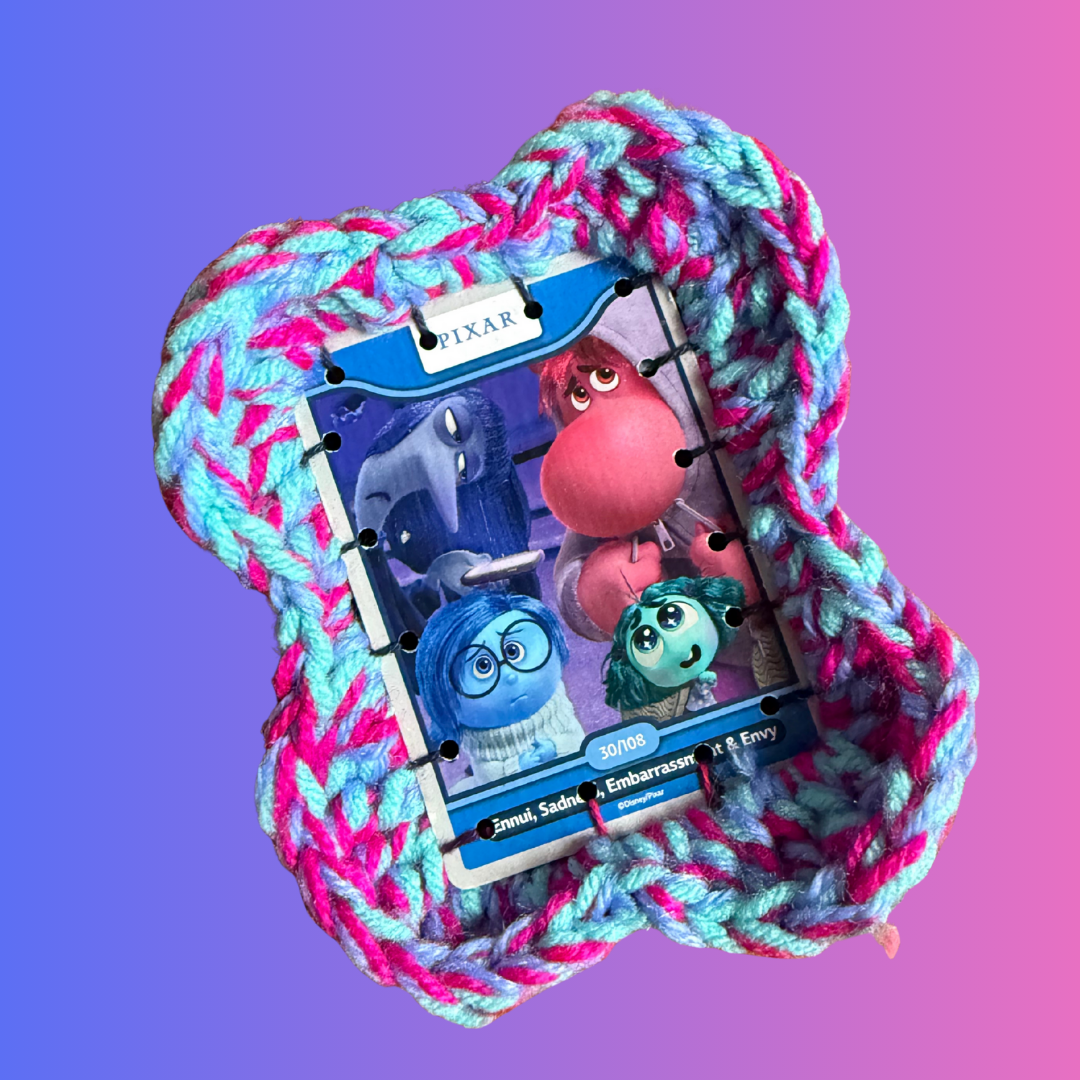 These pop culture wall hangings were made from recycled collectible cards that you could find at Australian Grocery stores in 2025. This kind of collectible is so often thrown out and discarded once the hype goes away and the next collection comes out. ColourPuff Girl wanted to make sure they weren’t wasted and celebrated instead! These wall pieces feature some of ColourPuff Girls favourite characters in movies and it was so fun to create custom frames for the cards. The Whacky Post modern style of frame adds to the whimsy and celebrates each character.